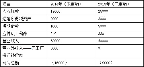 事項2,存在重大錯報風險,乙分廠于2014年未完成搬遷,搬遷補償款結余1000萬元,但報表中仍列示的是5000萬元,營業(yè)外收入多記。影響營業(yè)外收入/準確性。