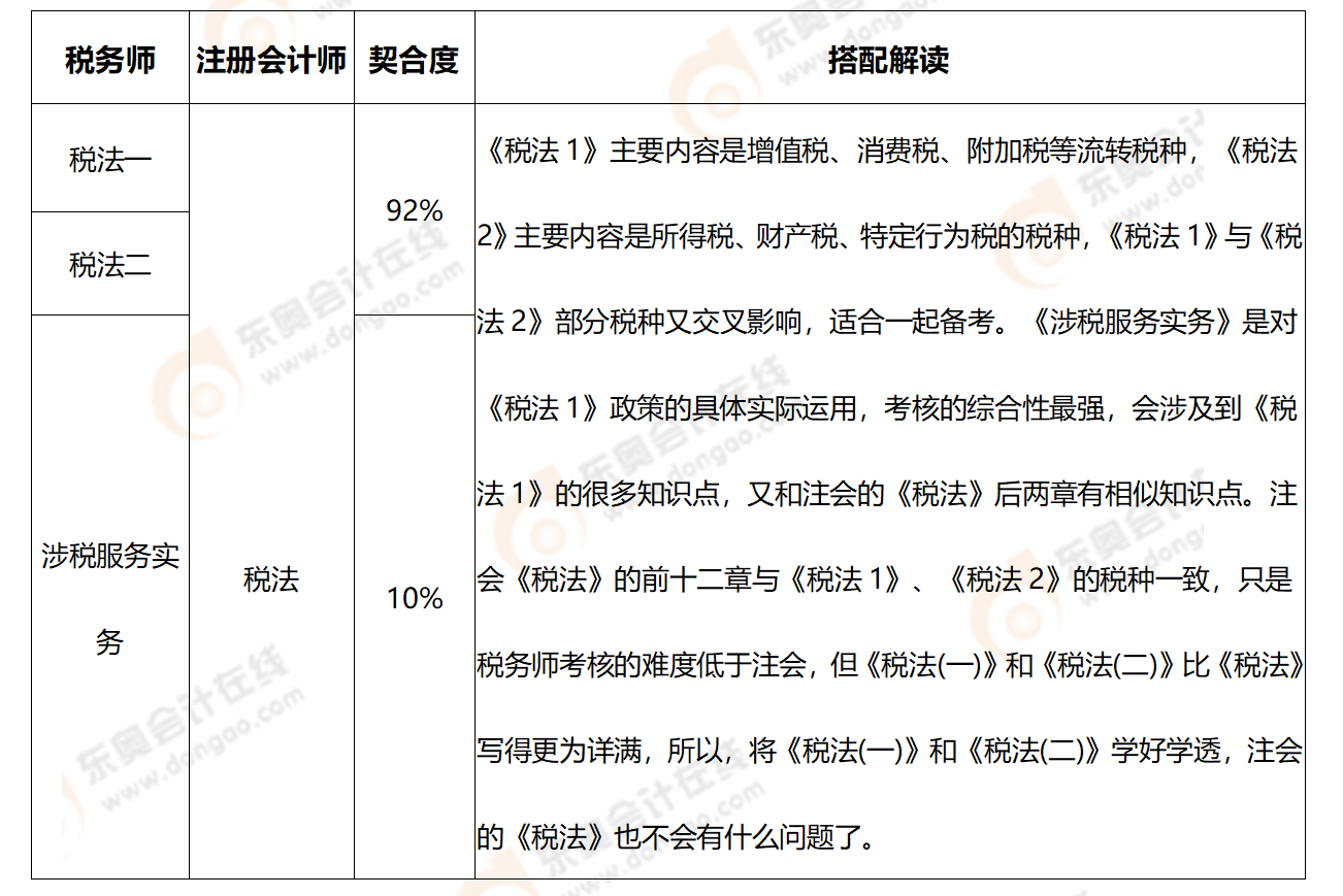 東奧小編為大家整理了注會和稅務師考試內容對比,僅供參考: