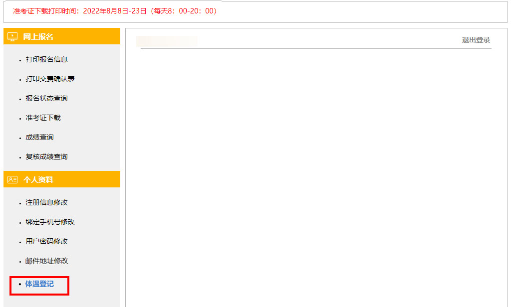 體溫監(jiān)測登記功能已于8月12日開放,考生需要從8月12日進行體溫登記。