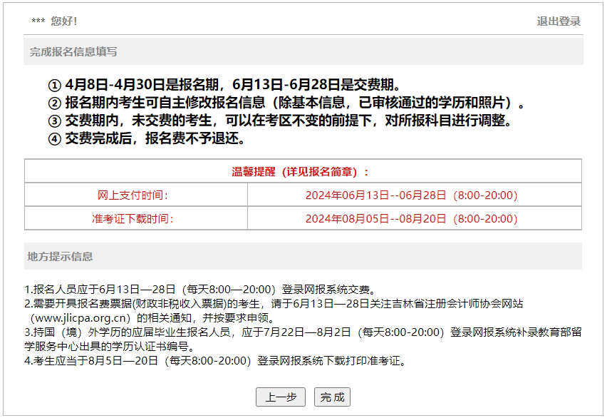 確認(rèn)報(bào)名信息后,點(diǎn)擊“完成”完成報(bào)名。注會(huì)報(bào)名時(shí)間與交費(fèi)時(shí)間分成兩個(gè)時(shí)間段進(jìn)行,請(qǐng)考生們?cè)谝?guī)定時(shí)間內(nèi)完成交費(fèi)。