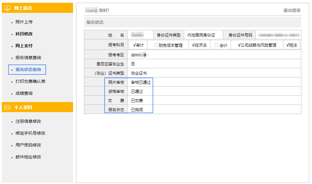 在完成注會報名信息填寫、資格審核和交費三個步驟后,才算報名成功,此時考生們可以進行個人報名狀態(tài)查詢,確保成功報名!