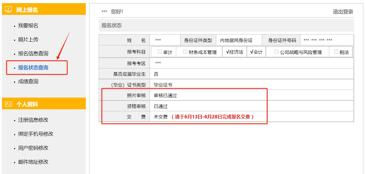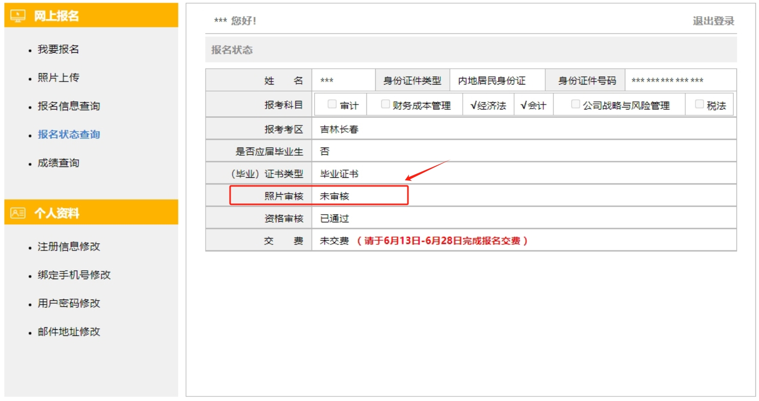 此狀態(tài)并不表明考生全部提交信息合格,同學(xué)們需要及時(shí)關(guān)注此處動向,確保自己的照片審核符合網(wǎng)報(bào)系統(tǒng)要求,未被“退回”。