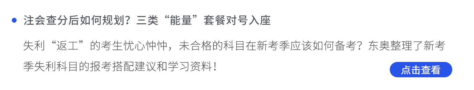如今25年注會考試預(yù)習(xí)備考已經(jīng)開始,備考與報考雙管齊下,爭取在新考季中順利通關(guān)!為了幫助各位考生進(jìn)入預(yù)習(xí)狀態(tài),東奧帶領(lǐng)大家規(guī)劃新考季!點(diǎn)擊下圖,了解詳情!