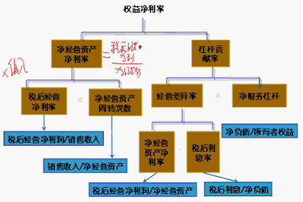 權(quán)益凈利率=凈經(jīng)營資產(chǎn)凈利率+(凈經(jīng)營資產(chǎn)凈利率-稅后利息率)×凈負債/所有者權(quán)益