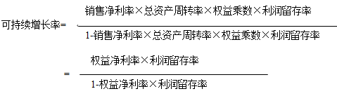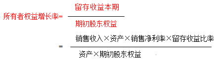 =銷售凈利率×總資產(chǎn)周轉(zhuǎn)率×期初權(quán)益期末總資產(chǎn)乘數(shù)×收益留存率