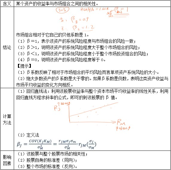 【提示1】資產(chǎn)組合不能抵消系統(tǒng)風(fēng)險(xiǎn),所以,資產(chǎn)組合的β系數(shù)是單項(xiàng)資產(chǎn)β系數(shù)的加權(quán)平均數(shù)(β組合=∑βi×Wi)。