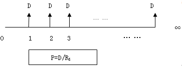∴ P=D1/(RS-g)= D0×(1+g)/(RS-g)