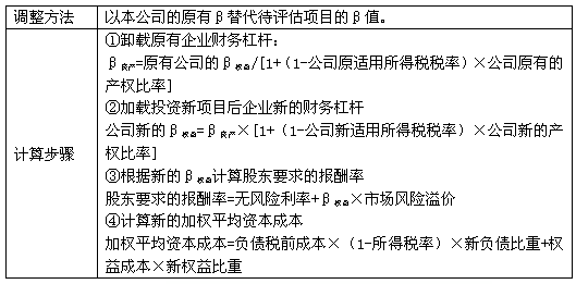 若目標(biāo)公司待評(píng)估項(xiàng)目經(jīng)營(yíng)風(fēng)險(xiǎn)與公司原有經(jīng)營(yíng)風(fēng)險(xiǎn)一致,但資本結(jié)構(gòu)與公司原有資本結(jié)構(gòu)不一致(滿(mǎn)足等風(fēng)險(xiǎn)假設(shè),但不滿(mǎn)足等資本結(jié)構(gòu)假設(shè))。