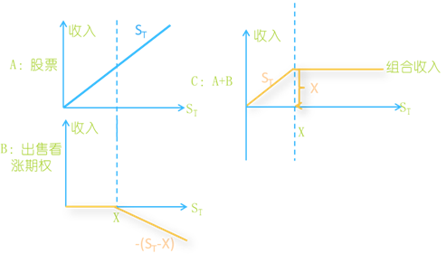股票加空頭看漲期權(quán)組合,是指購(gòu)買1份股票,同時(shí)出售該股票1份看漲期權(quán)。