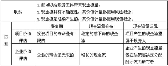 【知識(shí)點(diǎn)】:企業(yè)價(jià)值評(píng)估與項(xiàng)目?jī)r(jià)值評(píng)估的比較