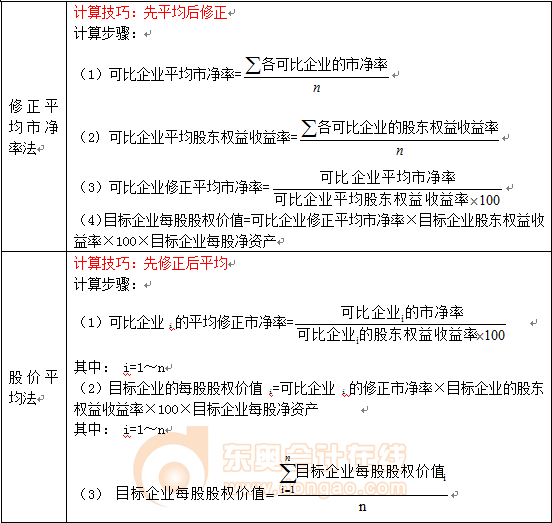 目標(biāo)企業(yè)股權(quán)價值=可比企業(yè)平均市凈率×目標(biāo)企業(yè)凈資產(chǎn) |