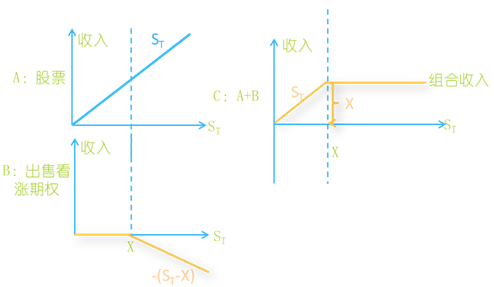 股票加空頭看漲期權(quán)組合,是指購買1份股票,同時(shí)出售該股票1份看漲期權(quán)。