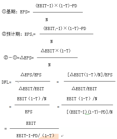 每股收益(Earnings Per Share):EPS=[(EBIT-I)×(1-T)-PD]/N