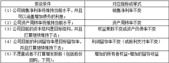 可持續(xù)增長(zhǎng)率=滿足一定前提條件下的銷售增長(zhǎng)率