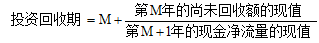 投資回收期=M+(第M年的尚未回收額/第M+1年的現金凈流量)
