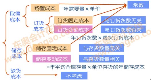 與儲備存貨有關(guān)的成本,包括取得成本、儲存成本、缺貨成本。