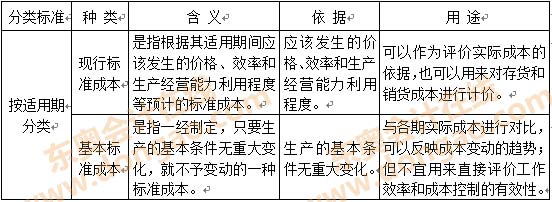 【知識(shí)點(diǎn)】:標(biāo)準(zhǔn)成本的分類