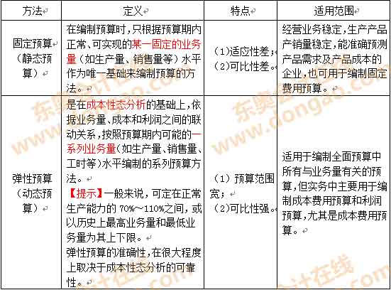 【知識點】:固定預(yù)算法與彈性預(yù)算法