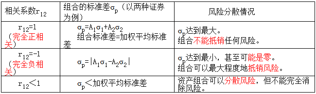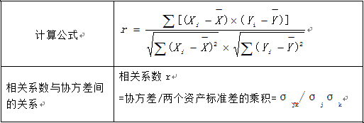 【提示2】相關(guān)系數(shù)的正負(fù)與協(xié)方差的正負(fù)相同。相關(guān)系數(shù)為正值,表示兩種資產(chǎn)收益率呈同方向變化,組合抵消的風(fēng)險(xiǎn)較少;負(fù)值則意味著反方向變化,抵消的風(fēng)險(xiǎn)較多。