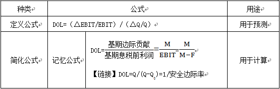 DOL=(△EBIT/EBIT)/(△Q/Q)=[(P-V)△Q/EBIT]/(△Q/Q)