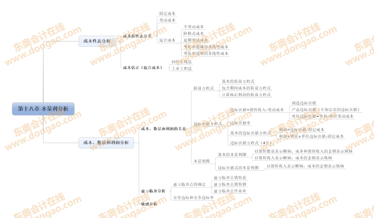 【東奧小編】2014年注冊(cè)會(huì)計(jì)師考試正式進(jìn)入基礎(chǔ)備考階段,注會(huì)知識(shí)點(diǎn)繁雜細(xì)碎,想要全面掌握注會(huì)各科目的知識(shí),需要科學(xué)高效的學(xué)習(xí)方法,思維導(dǎo)圖正是一種非常適合注會(huì)復(fù)習(xí)的學(xué)習(xí)方法,正確利用思維導(dǎo)圖,不僅能使自己積極進(jìn)行知識(shí)點(diǎn)總結(jié),形成清晰的思路,還能對(duì)知識(shí)點(diǎn)進(jìn)行快速查漏補(bǔ)缺。以下是2014注會(huì)《財(cái)務(wù)成本管理》第十八章本量利分析思維導(dǎo)圖: