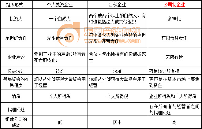 2015《財(cái)務(wù)成本管理》預(yù)習(xí)考點(diǎn):企業(yè)的組織形式