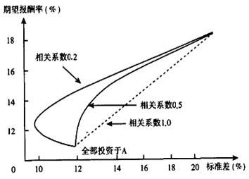 投資組合理論認(rèn)為,若干種證券組成的投資組合,其收益是這些證券收益的加權(quán)平均數(shù),但是其風(fēng)險(xiǎn)不是這些證券風(fēng)險(xiǎn)的加權(quán)平均風(fēng)險(xiǎn),投資組合能降低風(fēng)險(xiǎn)。