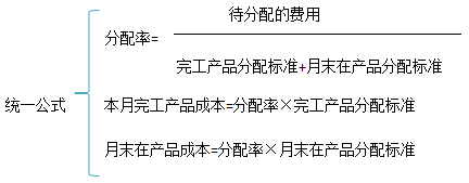 【提示】公式前兩項之和為待分配費用,待分配費用在完工產(chǎn)品與月末在產(chǎn)品之間分配有兩類方法:一是“倒擠法”,即先確定月末在產(chǎn)品成本,再用待分配費用減月末在產(chǎn)品成本得出完工產(chǎn)品的成本;二是“分配法”,即將待分配費用按一定比例在完工產(chǎn)品與月末在產(chǎn)品之間進行分配。