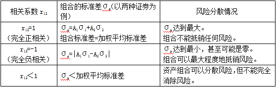 (2)相關系數(shù)與組合風險之間的關系