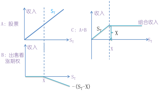 股票加空頭看漲期權(quán)組合,是指購買1份股票,同時出售該股票1份看漲期權(quán)。