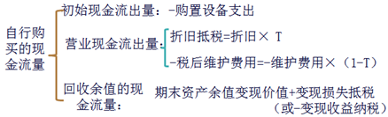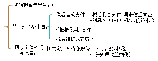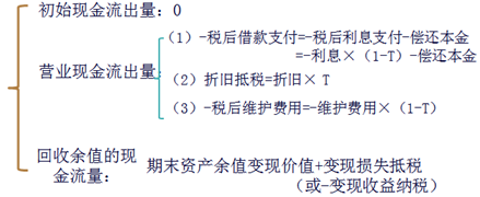【鏈接】此處與前面第九章資本預算自行購置設備投資的流量不矛盾,可以驗證“稅后借款支付的現(xiàn)值=初始購置支出”,因此如果初始流量是“-購置支出”,營業(yè)流量中就不能再考慮“稅后借款支付”,否則會雙重考慮流出量。