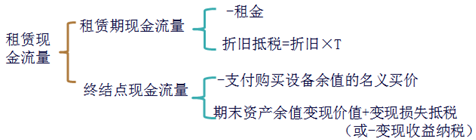(1)承租人租賃期的現(xiàn)金流量=-稅后租金=-租金×(1-所得稅率)