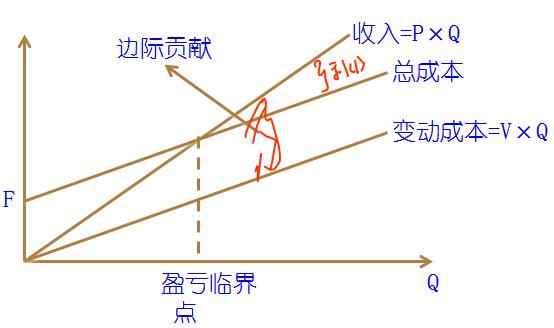 利潤=單價(jià)×銷量-單位變動成本×銷量-固定成本 =P×Q-V×Q-F=(P-V)×Q-F |