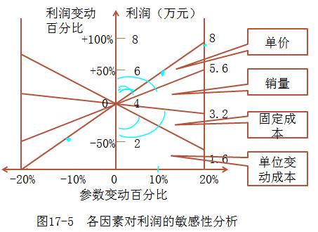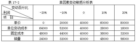 下面仍以例17-5的數(shù)字為基礎(chǔ),進行敏感程度的分析: