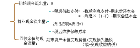 【鏈接】此處與前面第九章資本預算自行購置設備投資的流量不矛盾,可以驗證“稅后借款支付的現值=初始購置支出”,因此如果初始流量是“-購置支出”,營業(yè)流量中就不能再考慮“稅后借款支付”,否則會雙重考慮流出量。