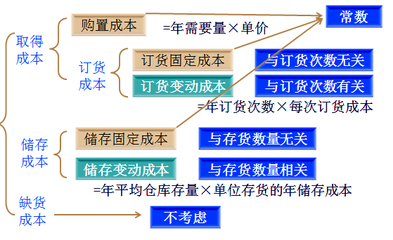 最經(jīng)濟(jì)訂貨批量是變動(dòng)儲(chǔ)存成本線與變動(dòng)訂貨成本線交叉點(diǎn)所對(duì)應(yīng)的庫存量。