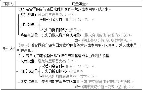 承租人現(xiàn)金流量(租賃相比自行購(gòu)買(mǎi)的差量?jī)衄F(xiàn)金流量)