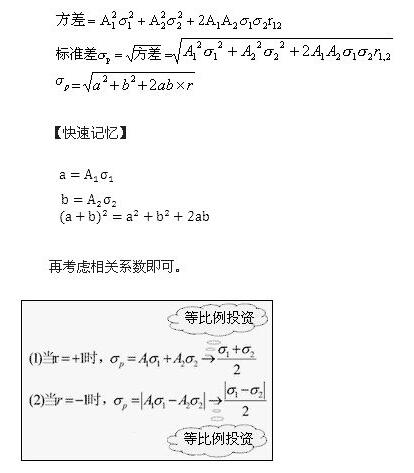 3、兩項資產(chǎn)組合的方差和組合的標準差