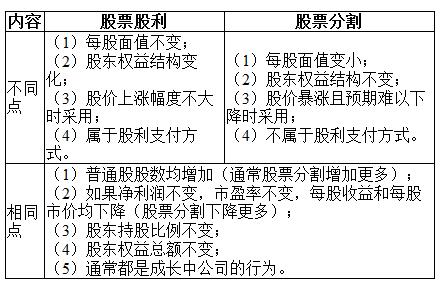 股票股利和股票分割的不同點和相同點