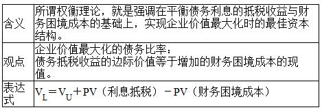 VL(有負(fù)債企業(yè)價值)=VU(無負(fù)債企業(yè)價值)+PV(利息抵稅)-PV(財務(wù)困境成本)+PV(債務(wù)代理收益)-PV(債務(wù)代理成本)