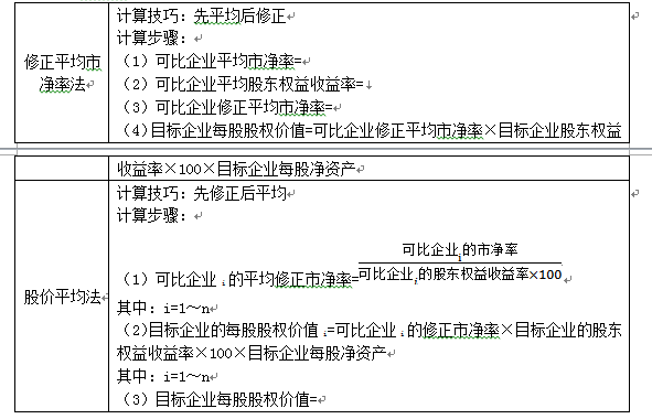 市凈率模型 (市價(jià)/凈資產(chǎn)比率模型) | 目標(biāo)企業(yè)股權(quán)價(jià)值=可比企業(yè)平均市凈率×目標(biāo)企業(yè)凈資產(chǎn) |