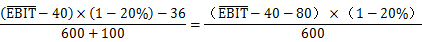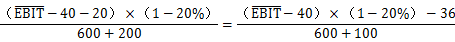 無(wú)差別點(diǎn)的EBIT=(800×120-600×60)/(800-600)=300(萬(wàn)元)