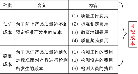(2)一般來說,企業(yè)能夠控制預(yù)防成本和鑒定成本的支出,因此這兩種成本屬于可控質(zhì)量成本;而無論是內(nèi)部還是外部失敗成本,企業(yè)往往無法預(yù)料其發(fā)生,并且一旦產(chǎn)生失敗成本,其費(fèi)用的多少往往不能在事前得到,因此失敗成本屬于不可控質(zhì)量成本。