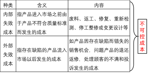 【提示】(1)鑒定成本以及內(nèi)部失敗成本都是發(fā)生在產(chǎn)品未到達(dá)顧客之前的階段;外部失敗成本一般發(fā)生在產(chǎn)品被消費(fèi)者接受以后的階段。