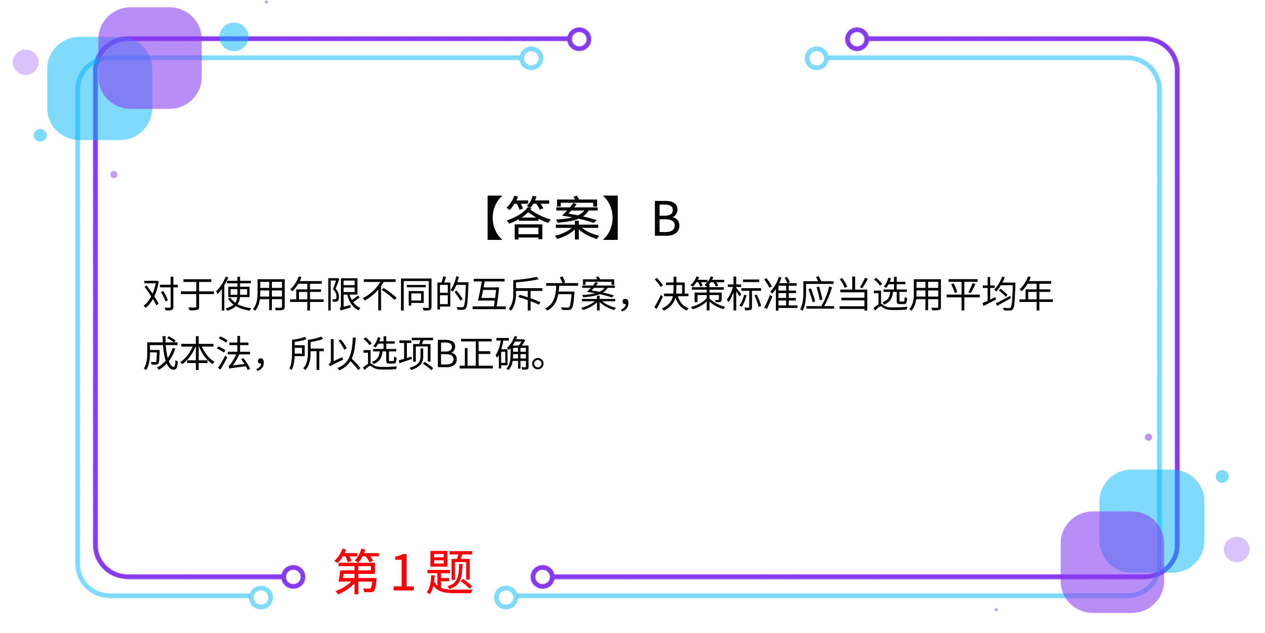 1.在設(shè)備更換不改變生產(chǎn)能力且新舊設(shè)備未來使用年限不同的情況下,固定資產(chǎn)更新決策應(yīng)選擇的方法是( )。(2015年)