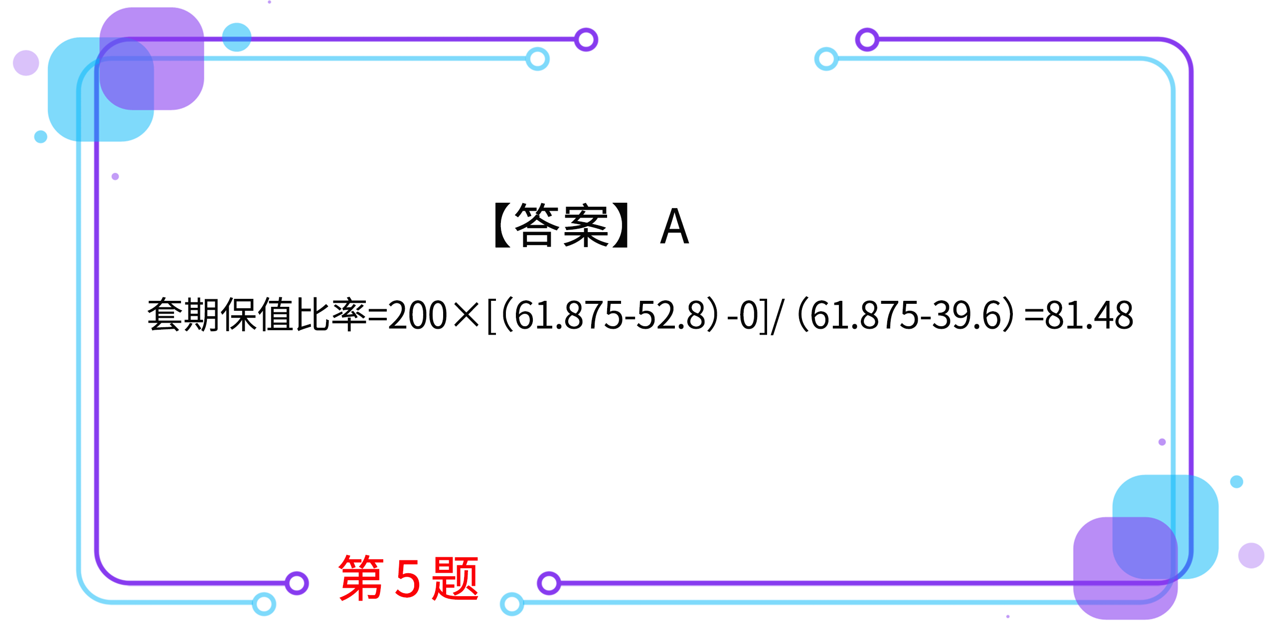 5.假設(shè)某公司股票目前的市場價格為49.5元,而一年后的價格可能是61.875元和39.6元兩種情況。再假定存在一份200股該種股票的看漲期權(quán),期限是一年,執(zhí)行價格為52.8元。投資者可以購進(jìn)上述股票且按無風(fēng)險報價利率10%借入資金,同時售出一份200股該股票的看漲期權(quán)。則套期保值比率為( )。