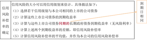 基本做法 | 需要知道目標(biāo)公司的關(guān)鍵財務(wù)比率,根據(jù)這些比率可以大體上判斷該公司的信用級別,有了信用級別就可以使用風(fēng)險調(diào)整法確定其債務(wù)成本 |
