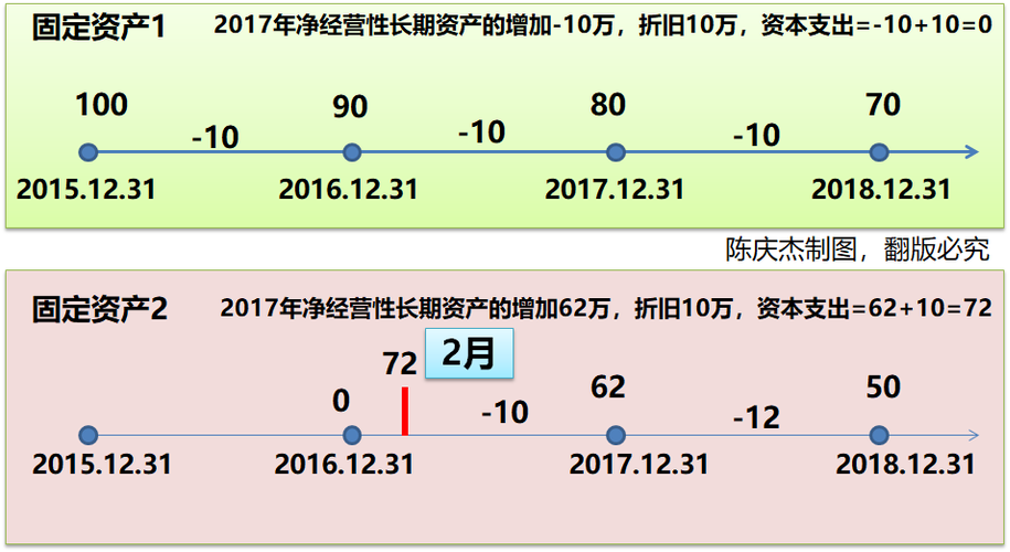 固定資產(chǎn)2是2017年2月28日新增的,原值72萬(wàn),當(dāng)年計(jì)提折舊10萬(wàn),期末賬面價(jià)值62萬(wàn)。根據(jù)公式計(jì)算2017年資本支出如下: