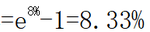 如果年復利次數(shù)非常非常多(復利期間非常非常短),在某報價利率下,年實際利率趨近于 ,我們稱之為連續(xù)復利,當報價利率是8%時,連續(xù)復利的有效年利率 |