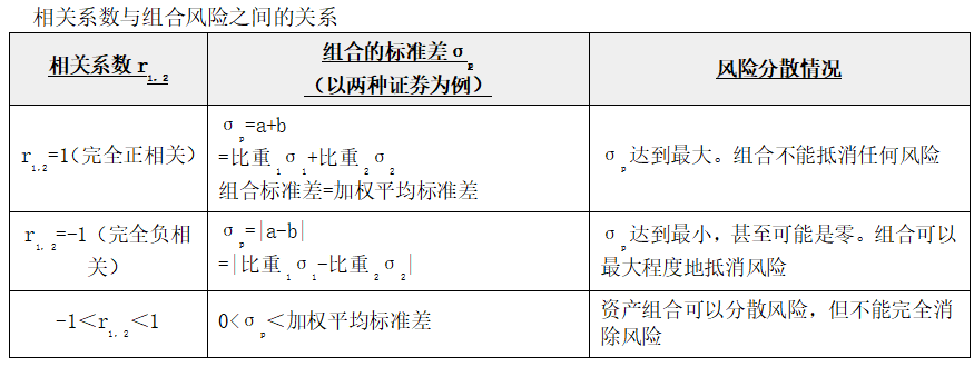 (2)當(dāng)-1<相關(guān)系數(shù)<0,表示基本負(fù)相關(guān),表明兩項(xiàng)資產(chǎn)的報(bào)酬率變化方向相反。